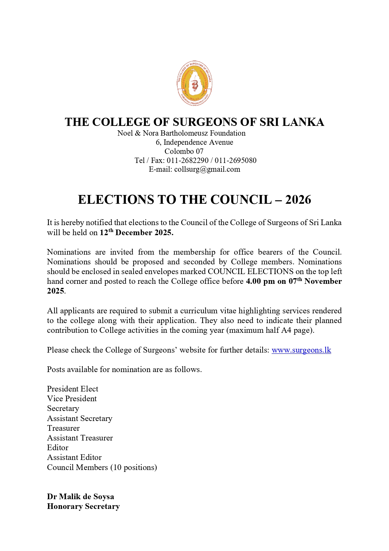 Copyright © 2009 - 2025 The College of Surgeons of Sri Lanka. All Rights Reserved | Designed by Web Solutions Lanka